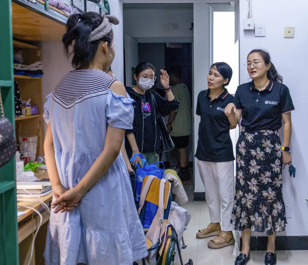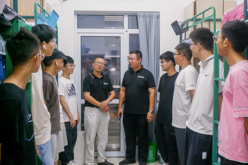 当日晚上,学院党政领导、班主任、辅导员走访了新生寝室,在走访过程中,学院领导与本科生、研究生进行了亲切的交谈,详细询问报到情况与适应情况,并鼓励同学们树立伟大理想与专业自信,在以后的人生路上有一番建树。同时,学院领导也向新生提出尽早适应大学生活,继续为建设祖国奋发图强的要求,并提醒大家提高自我保护意识,加强安全防范。