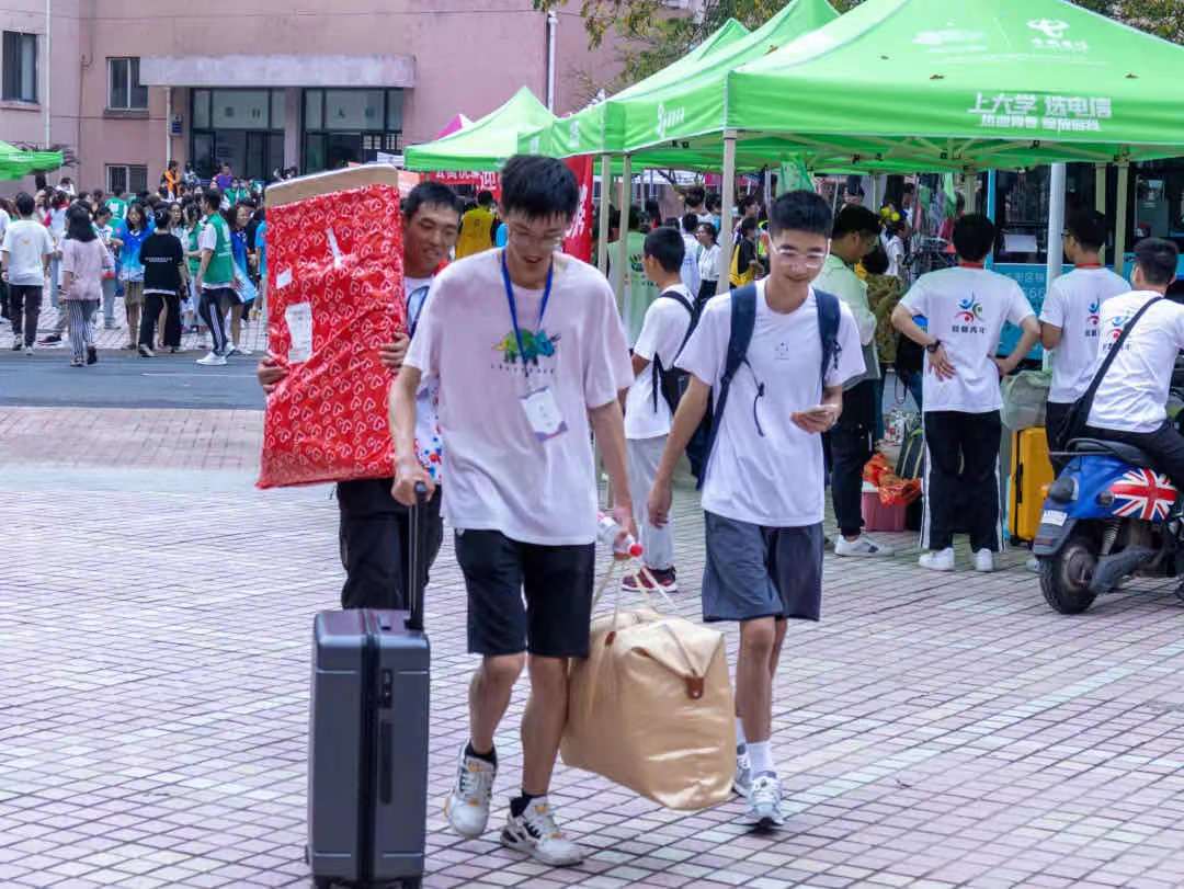 学校今年迎新沿用了数字智能化迎新模式,依靠启用人脸识别系统,新同学们只需几秒即可在门口完成报道。随后,在迎新现场,学生志愿者们接送新生及其行李,帮助新生办理学费缓交等手续,并耐心解答新生提出的问题,使新生感受到不一样的家的温暖。在新生寝室楼下,党员志愿者们特地设置服务点,帮助新生搬运行李上楼,并同时开展防诈骗等宣传工作,防止新生受骗上当。